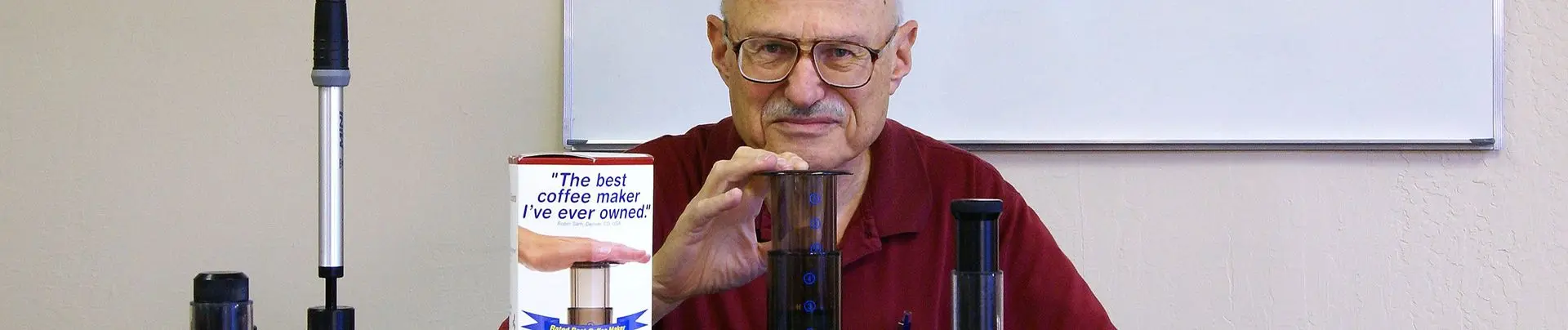 The inventor and engineer Alan Adler developed the AeroPress in 2005 as a product of his own personal wish for making good coffee. Alan Adler is among other things the inventor of Aerobie Pro-Rings and founder of the company Aerobie Inc.